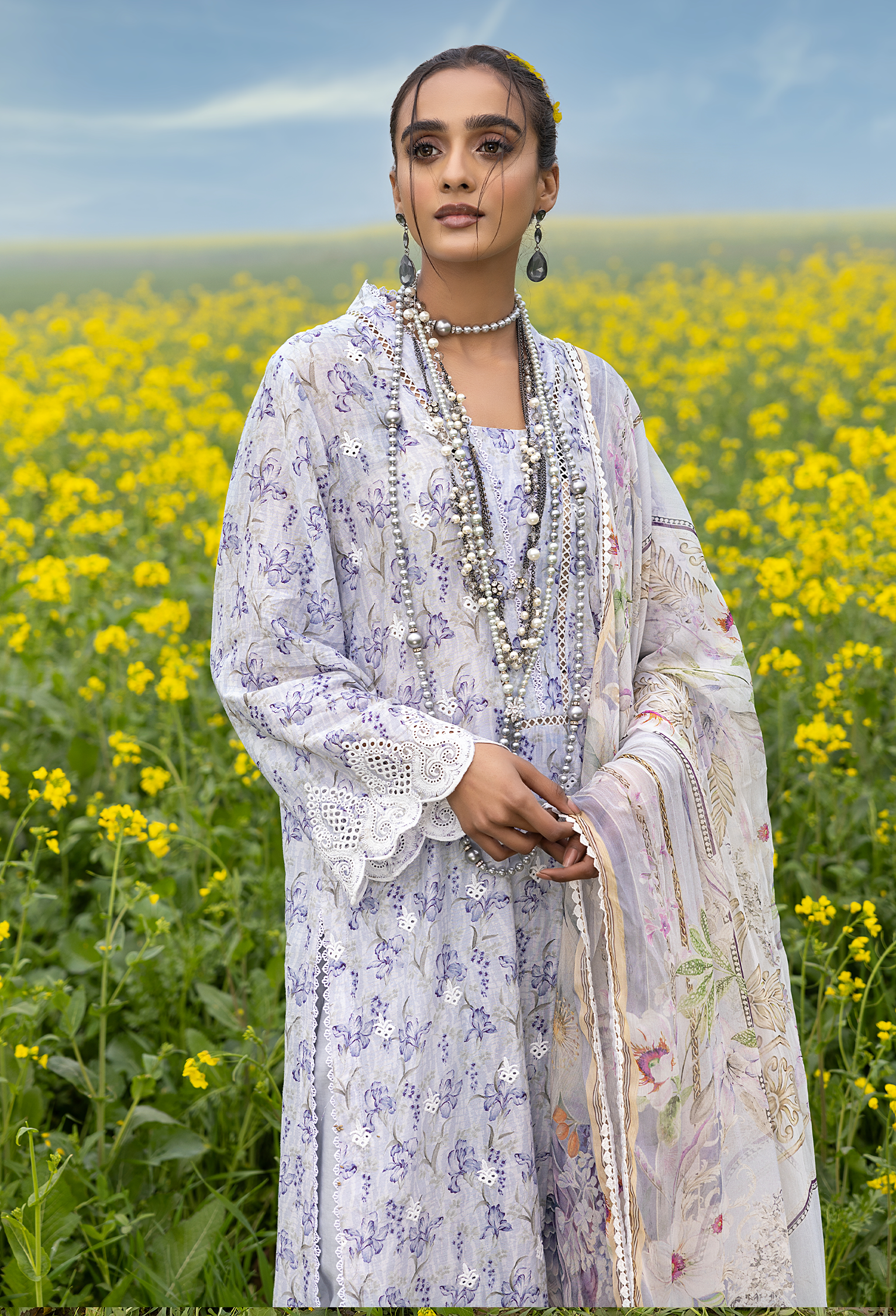Digital Printed And Schiffli Embroidered Front 0.8 MTR